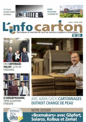 Au sommaire de ce numéro janvier-février distribué au salon CFIA Rennes, deux reportages sur des sites importants du groupe Altago, Cartonnages Vaillant et Cartonnages Duthoit, notre dossier sur la cybersécurité dans les onduleuses, un dossier machines consacré aux boxmakers (Göpfert, Kolbus, Zemat, Solarco), des reportages sur le Sanglier Packaging et sur Korus Packaging, l’actualité de TCY qui installe sa base européenne en France, et nos articles sur Technicarton, Zünd, …